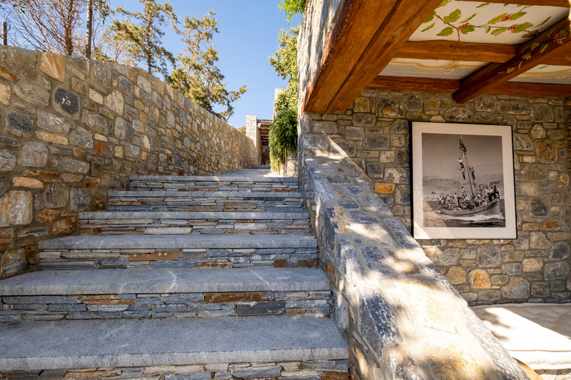 Located in Schinoussa, Amorgianos Villa unfolds gently across the land, shaped by stone, cultivated pathways, gardens, and open sea views. The architecture feels grounded and intentional, where privacy and landscape exist in natural balance.